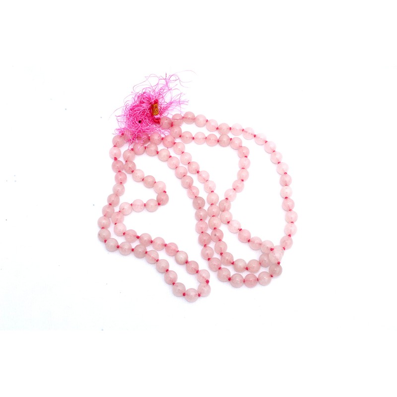 Jet International Rose Quartz 108 Beads Knotted Mala 8mm Prayer Japa Gemstone Reiki Healing Crystal Semi Precious Strand Tassel Tibetan Buddhist Wealth Abundance Aum Karma Image is just a reference