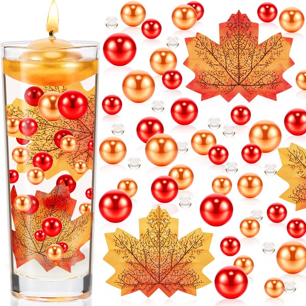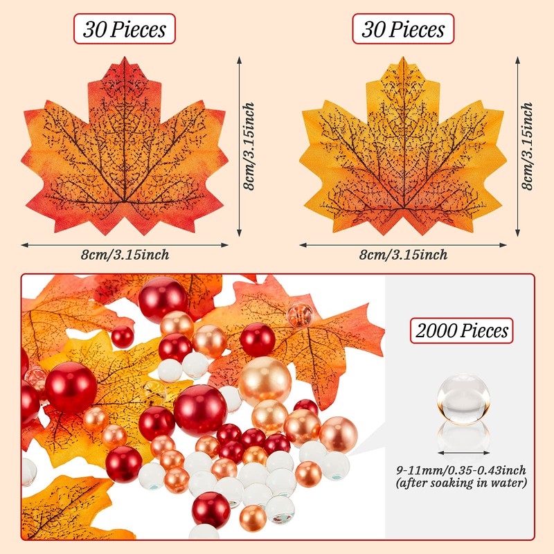 Jetec 2116 Pieces Thanksgiving Vase Filler Faux Pearl for Vase Filler Fall Vase Filler Water Gels Bead Candle Centerpiece for Thanksgiving Fall Table Party Decoration (Maple Leaves Style)