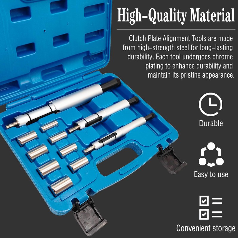 - High-Quality Material: JEUCLEL Clutch Plate Alignment Tools are made from high-strength steel for long-lasting durability. Each tool undergoes chrome plating to enhance durability and maintain its pristine appearance.