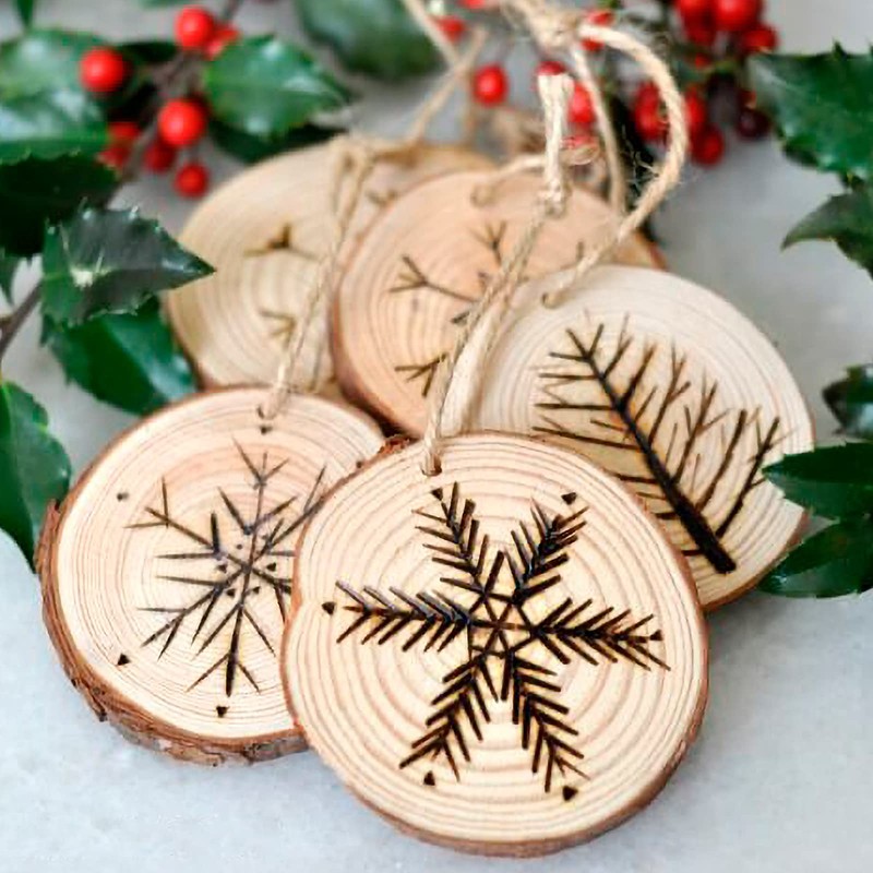 ❣ There are small pre-drilled holes that allow you to easily hang it up. Hanging bark wood slices on the Christmas tree is more complementary.