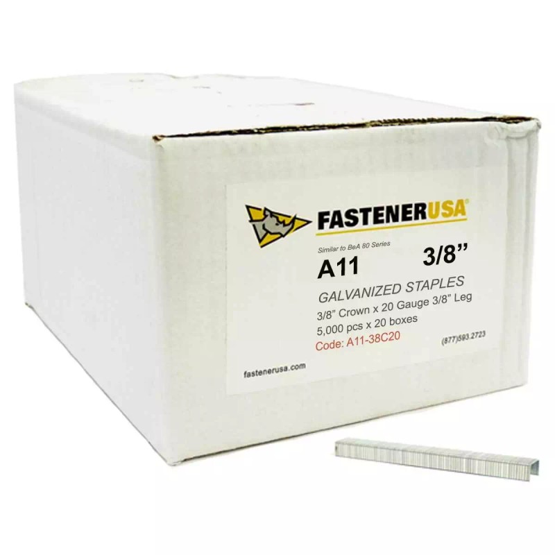 PLEASE NOTE **The labeling of the crown size is subject to interpretation by the manufacturer. Some manufacturers label as 7/16" crown while others label as 3/8" crown. The T50 / A11 staple is a proprietary crown size.  These staples are made according to T50 and A11 (R11) specifications and will fit T50 and similar staplers.