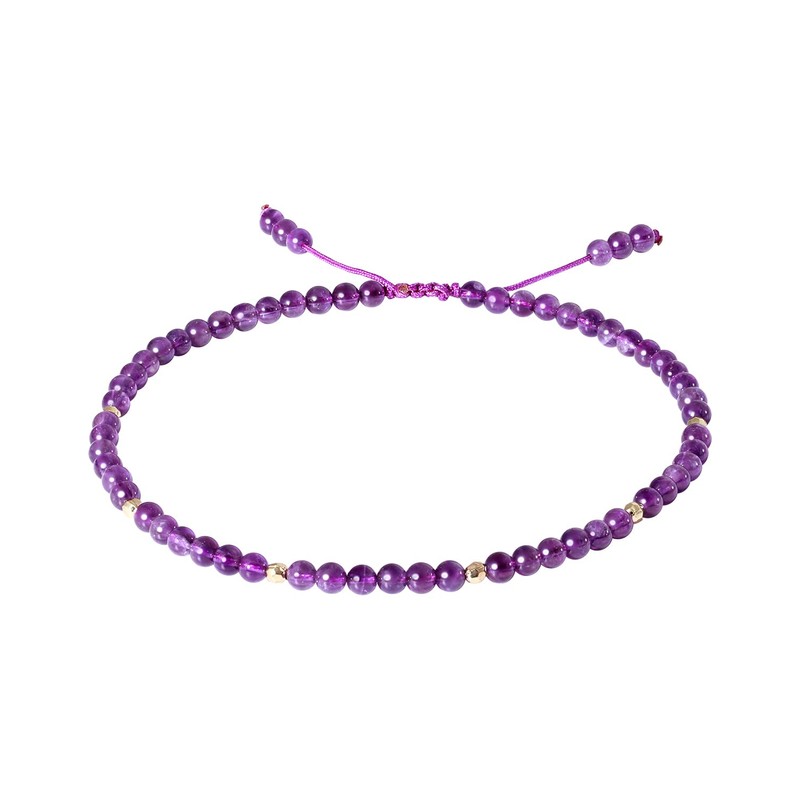 - ★Material:True natural gem amethyst,Size: Bead size:4mm (0.16"), weight:7g(0.25oz), adjustable chain length: (8.5"-10");