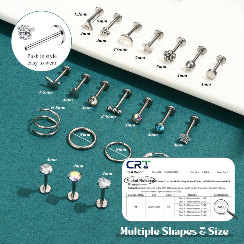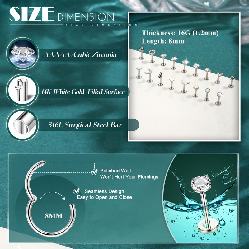 - Lip piercing jewellery: Whether for daily wear or for special occasions, this helix piercings and nose piercing offers a simple and reliable wearing experience, and can also be an ideal gift for your wife, daughter, mother, sister, girlfriend and yourself on birthdays, Mother's Day, Christmas and other anniversaries. Choose piercing set to make your celebration unique and make every woman feel infinite love and beauty