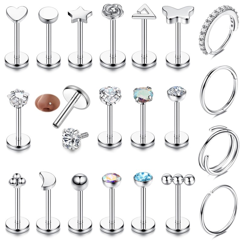 - Nose piercing silver. Welcome to our helix piercings collection. The small flat back design ensures a comfortable fit, whether you wear it while you sleep, exercise or shower, it can provide a simple and comfortable experience without pressure or discomfort. Versatile tragus piercing jewellery, suitable for women, men to meet your different needs. Conch piercing silver and ear piercing combination for multiple piercings.