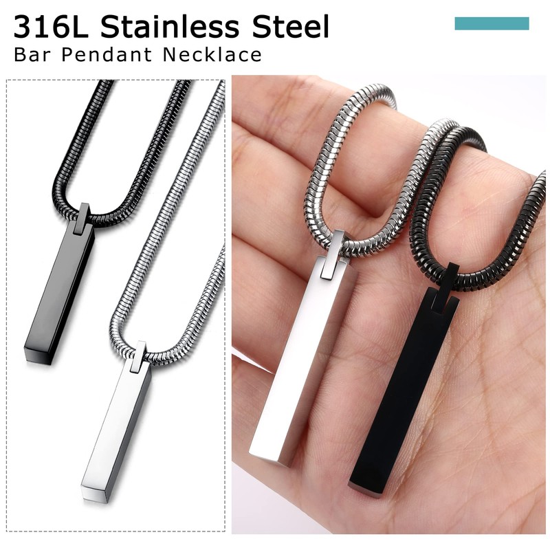 - 💫MENS NECKLACES STAINLESS STEEL💫One order includes 2 cuboid pendants with snake chain. Available in black or silver bar chain. Simple and elegant in design, each part of the necklace is cut with absolute precision to create the most dynamic, unique and comfortable necklace.