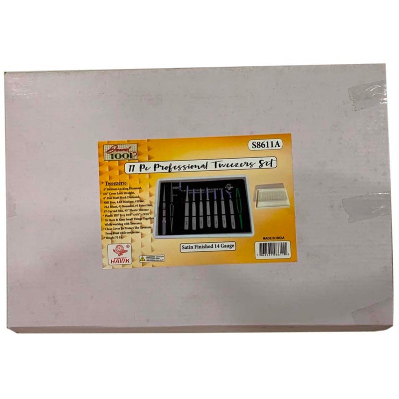 JEWEL TOOL 11 Pc Professional Tweezer Set | Steel & Plastic | Needle to Blunt Tips | 4.5" to 6.5" (11.4 cm - 16.5 cm) | Includes Vinyl Carrying Case