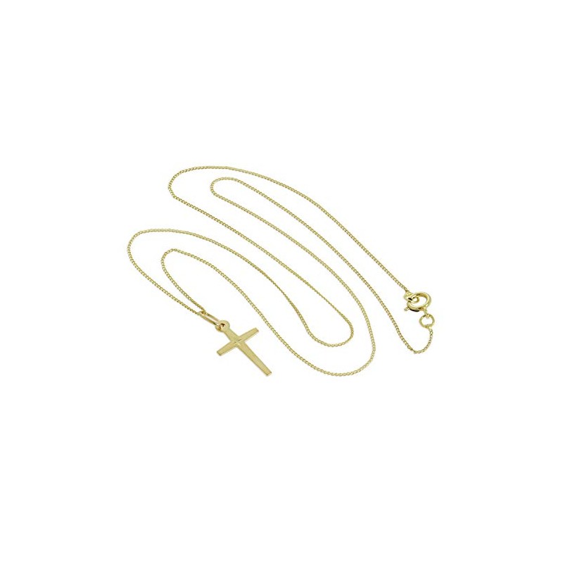 jewellerybox 9ct Yellow Gold Diamond Cut Cross Necklace 16 Inches Chain