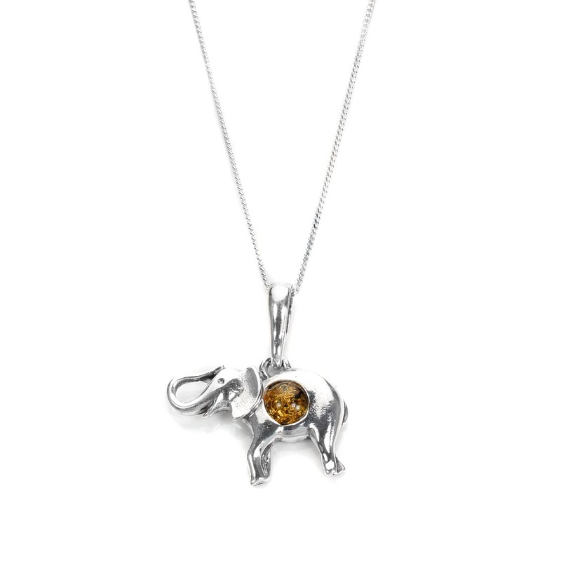jewellerybox Sterling Silver & Cognac Baltic Amber Elephant Pendant on 18 Inches Chain