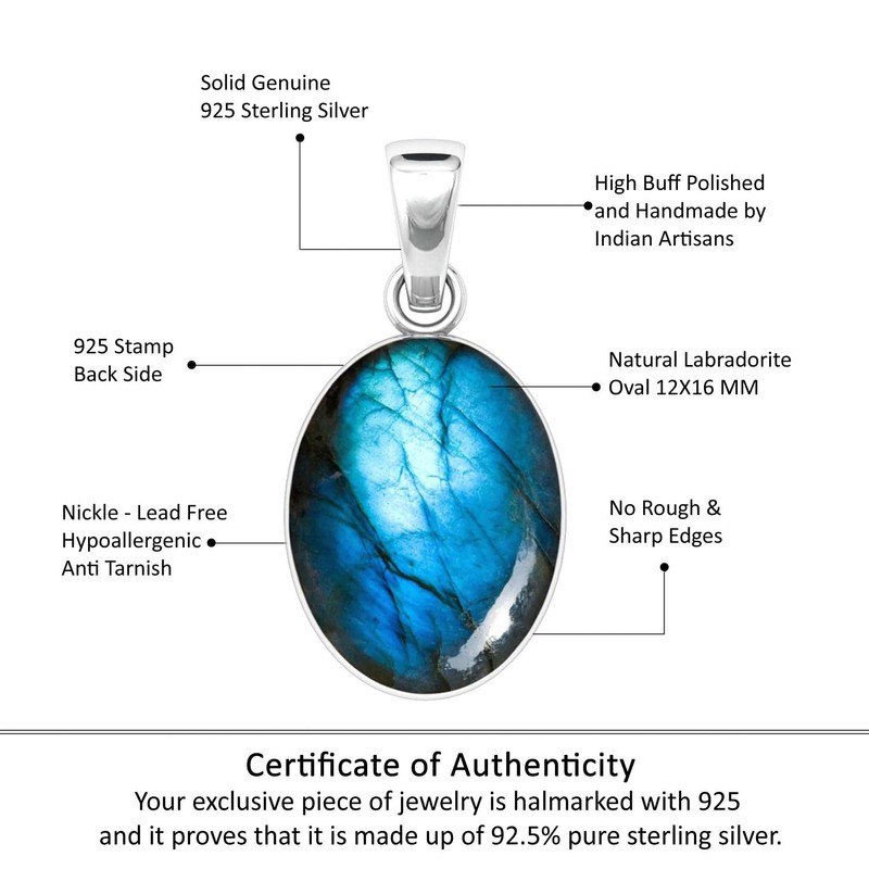 - Gemstone - Good Quality Real Labradorite Gemstone Oval 12x16 MM. This Gray silver pendant is for traditional November Birthstone.