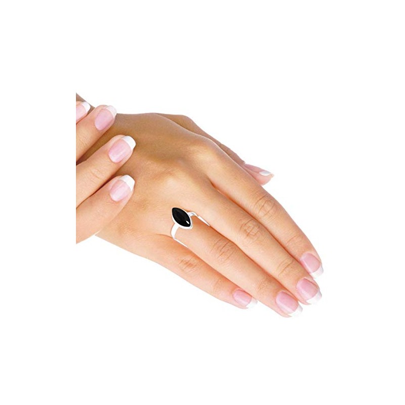 - Gemstone - Good Quality Natural Black Onyx Gemstone Marquoise 8x16 MM. This Black silver ring is for traditional July Birthstone.
