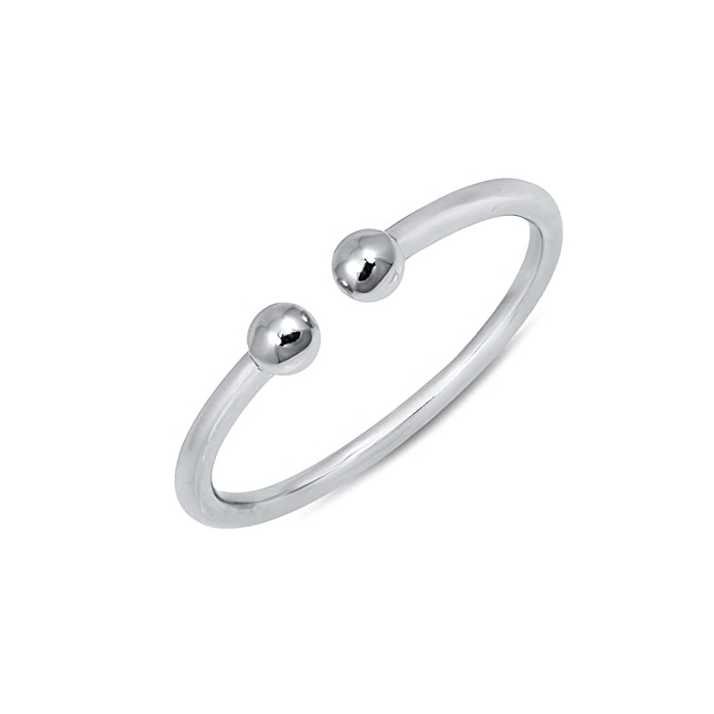 JEWELRITZY 1.5mm Ball Ends Toe Ring Solid 925 Sterling Silver Open Adjustable Band