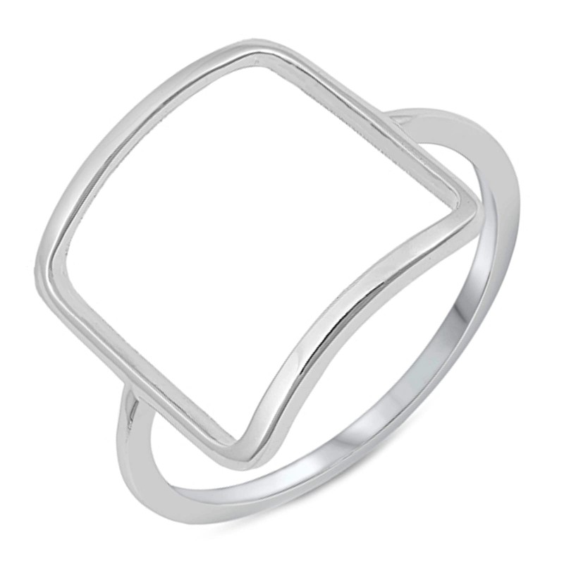 JEWELRITZY Solid 925 Sterling Silver 16.2mm Open Square Geometric Minimalist Ring Size 9