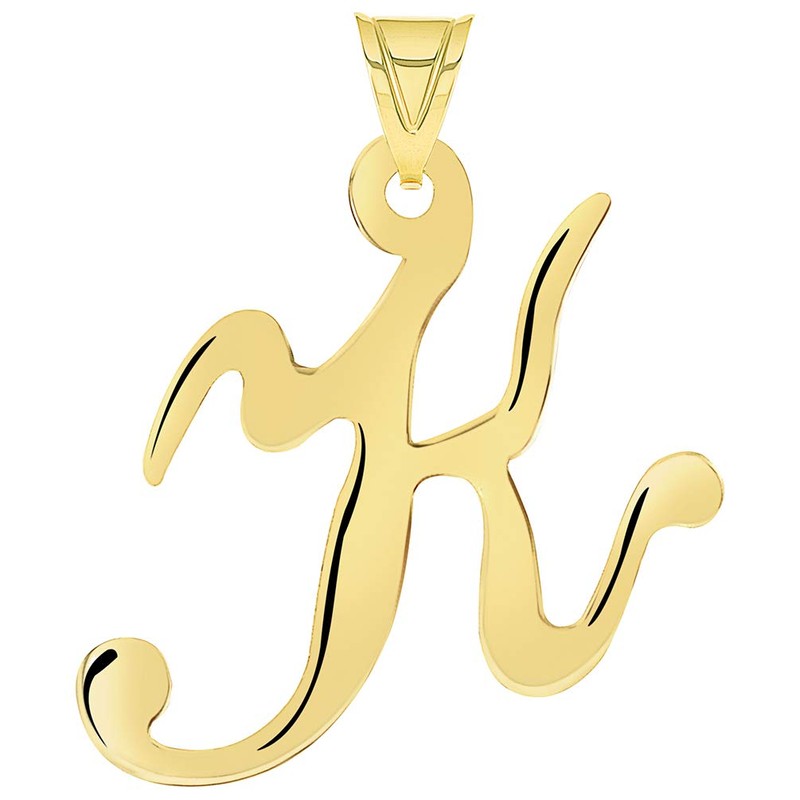 Jewelry America Solid 14k Yellow Gold Script Uppercase Initial Cursive Letter K Pendant
