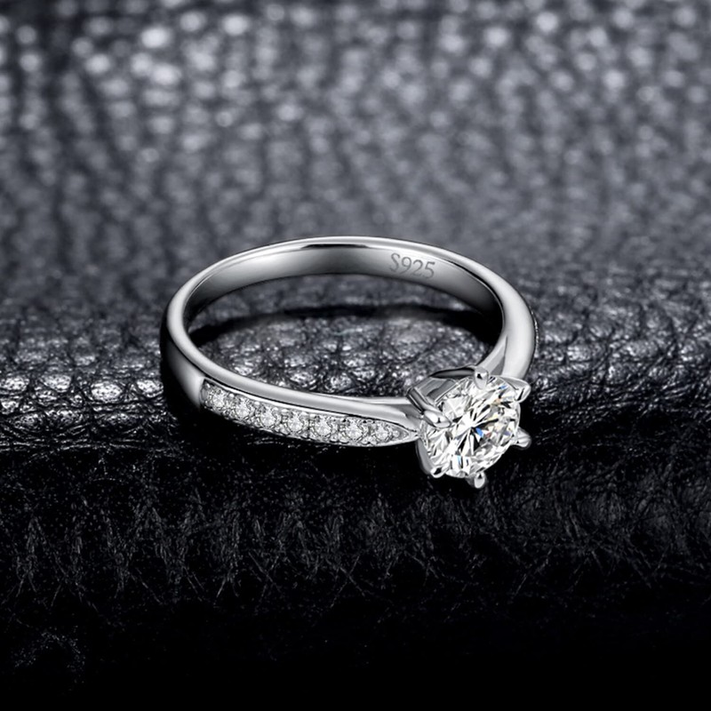 JewelryPalace Classic 1ct 1.5ct 2ct 3ct Round Cut Moissanite Solitaire Promise Ring Women's Engagement Ring 925 Silver with Stone Women Simulated Diamond Anniversary Wedding Rings Silver Rings,