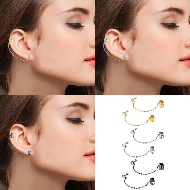 - ♥Size – Stud earrings height x width: 0.59 inches (1.5 cm) x 0.23 inches (6 mm); ear cuff height x width: 0.39 inches (1 cm) x 0.35 inches (9 mm); chain length: 2.83 inches (7.2 cm); weight: 4 g