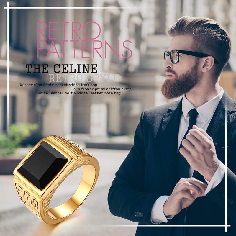 JewelryWe Jewellery Men's Ring Stainless Steel Glass Square Signet Ring Wedding Engagement Rings with Engraving Gold Black Size 54 to 65, Stainless Steel, Gold