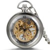 JewelryWe Mens Pocket Watch Haft Hunter Steampunk Transparent Dial Vintage Hand Wind Mechanical Watch Pendant Locket Necklace