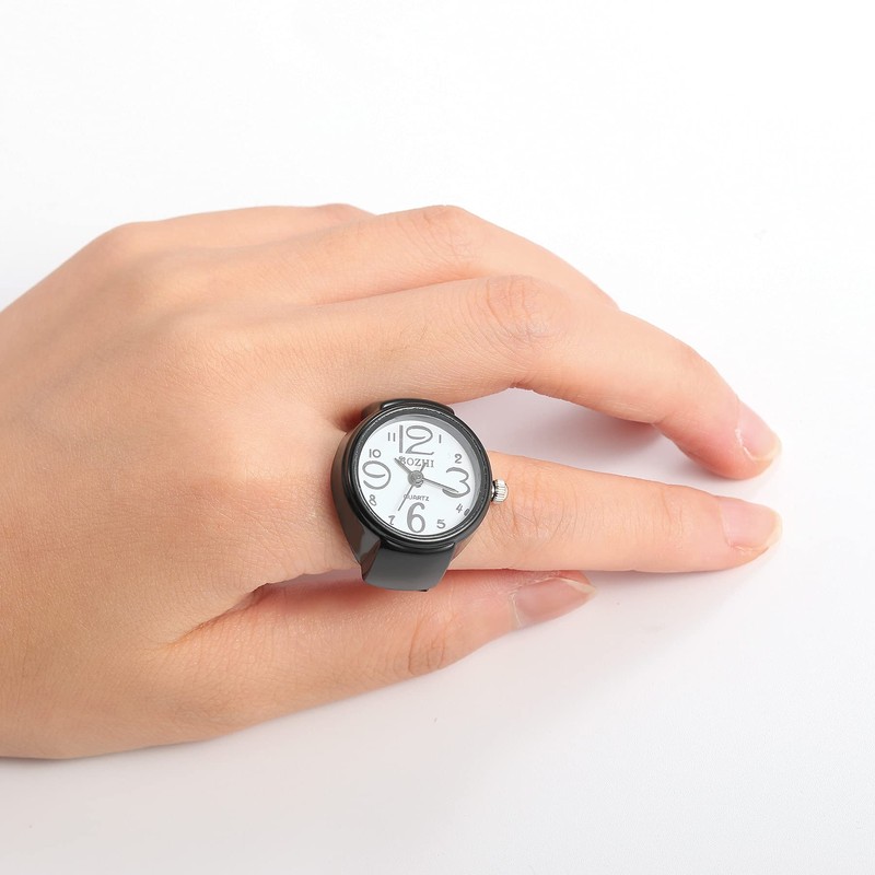 JewelryWe Women's Ring Watch Finger Watch Analogue Quartz Watch Elastic Ring Band Watch Ring Gift for Girls Black White Red Pink, black, Festive Occasions