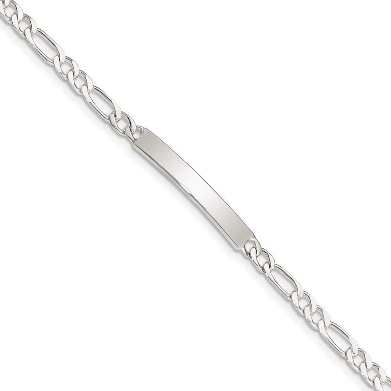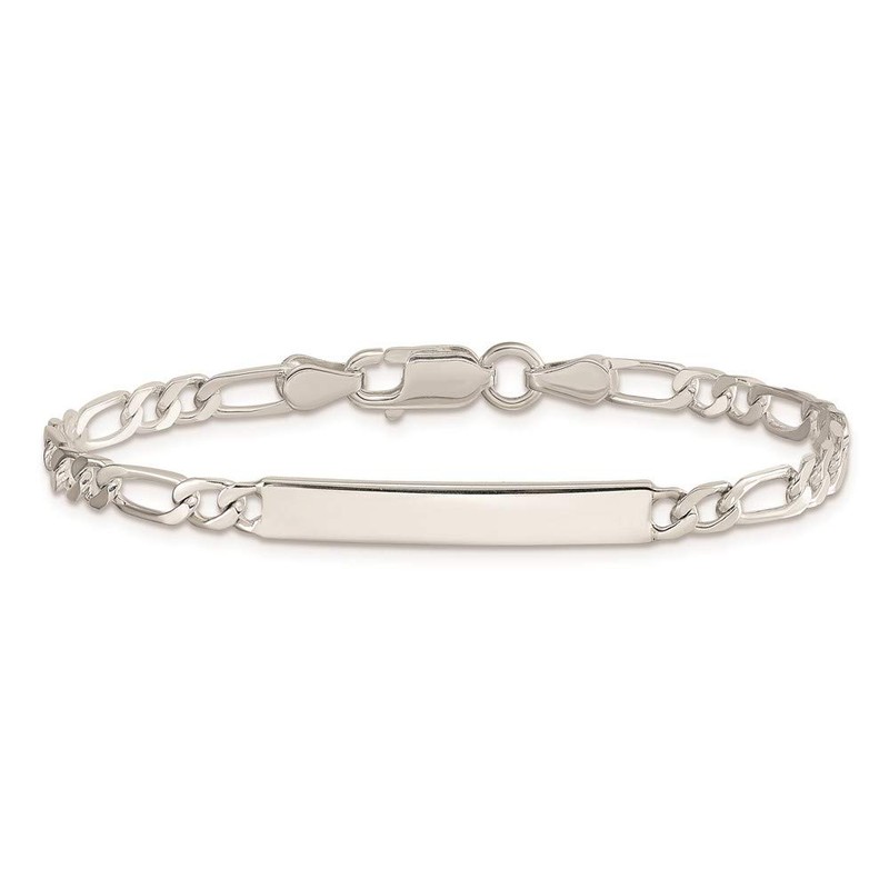 Jewels By Lux Polished Engravable Personalized Custom 925 Sterling Silver 7 in. Figaro Link ID Bracelet For Women Length 7 inches Width 4 mm With Lobster Claw Clasp