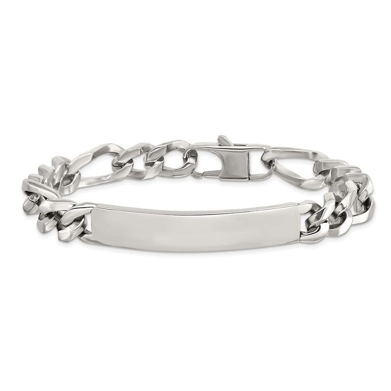 Jewels By Lux Polished Engravable Personalized Custom Stainless Steel Polished Figaro Large ID Bracelet For Men Length 9.25 inches Width 10 mm With Lobster Claw Clasp