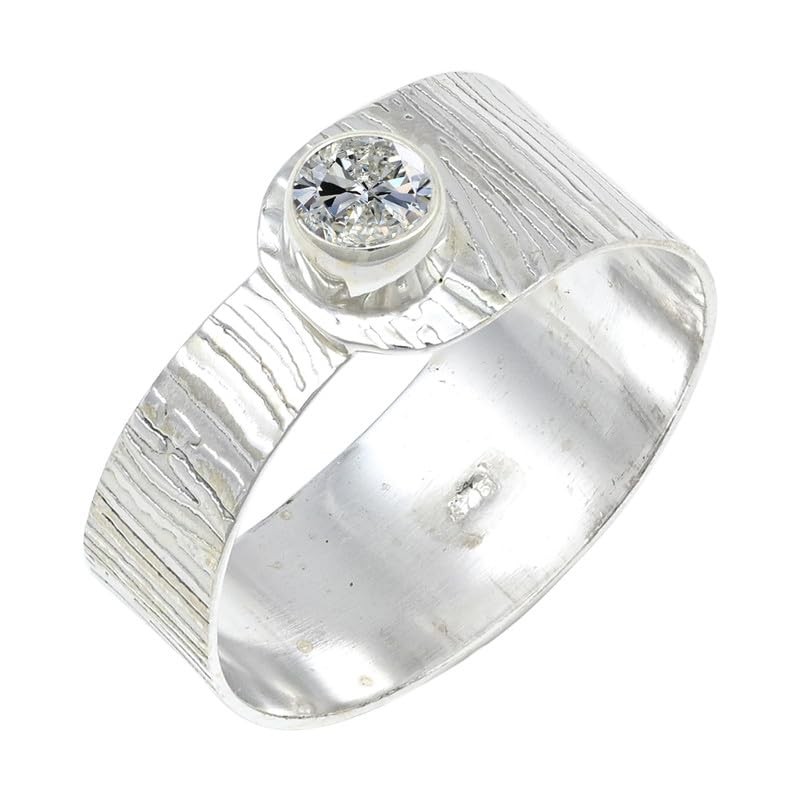 JEWELSTREZORO Moissanit Edelstein 925 Sterling Silber Stilvoller handgefertigter Band Ring Geschenkartikel Herren & Damen Schmuck TSR135BD_2 (48 (15.3))