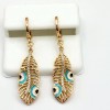 18K Gold Plated Feather Evil Eye Drop Dangle Earrings