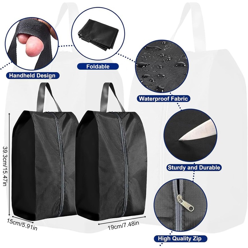 - Waterproof & Dustproof The shoe travel bag is waterproof and dustproof, keeping your shoes dry. Travel shoe bags can not only be used when travelling, but also to store shoes that do not correspond to the season so that they stay beautiful for a long time. Meets most of your storage needs when travelling. Shoe bag when not in use, it can be rolled up to save space.