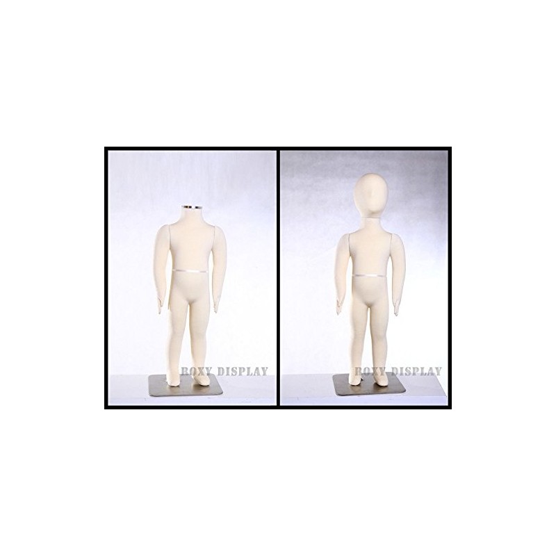 (JF-CH01T) ROXYDISPLAY New Child Dress Form 1 year old white jersey form cover, with head, flexible arms, fingers & legs, metal base