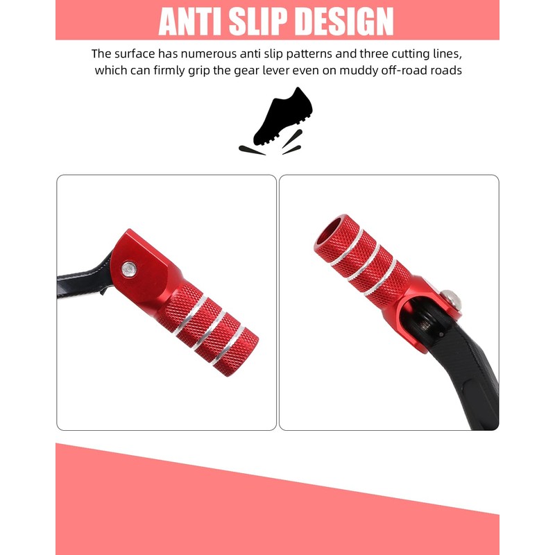 - ALUMINUM ALLOY: Dirt bike gear shifter is made of forged aluminum alloy, it is not easy to deform and is lightweight. it is aesthetically pleasing while also considering strength, without causing excessive weight burden.