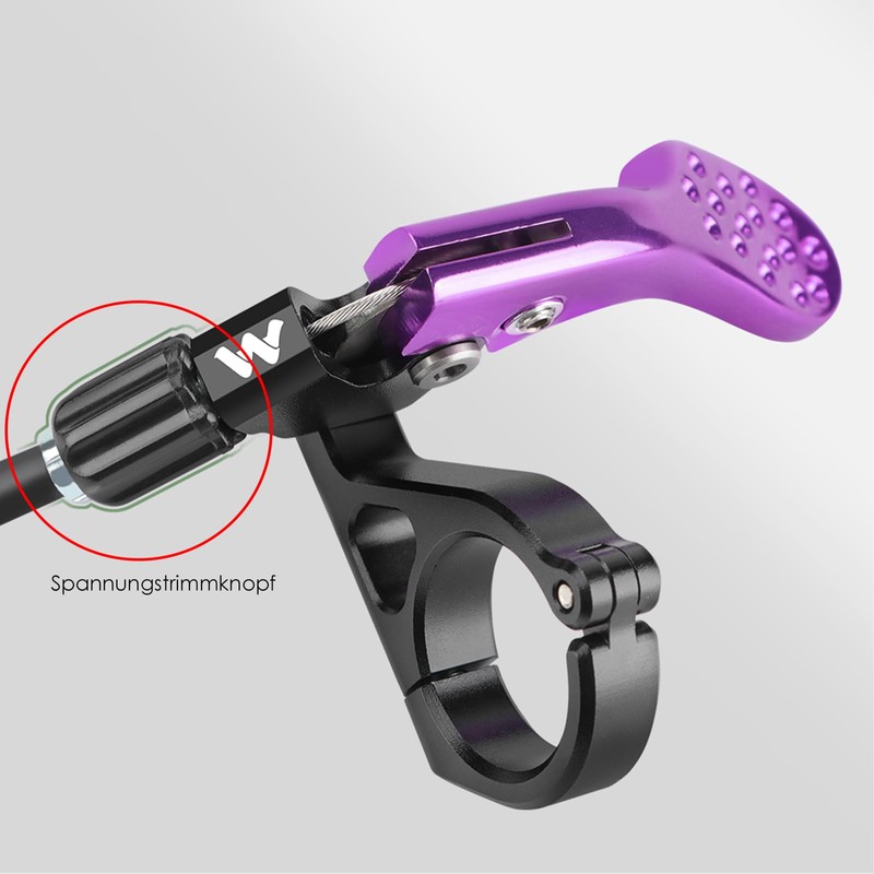 - Thanks to two variable attachment points, the lever can be individually attached to the handlebars to achieve your preferred ergonomics. The non-slip control surface ensures that you can safely and quickly position the saddle even in adverse conditions - perfect for demanding trails and changing terrain.