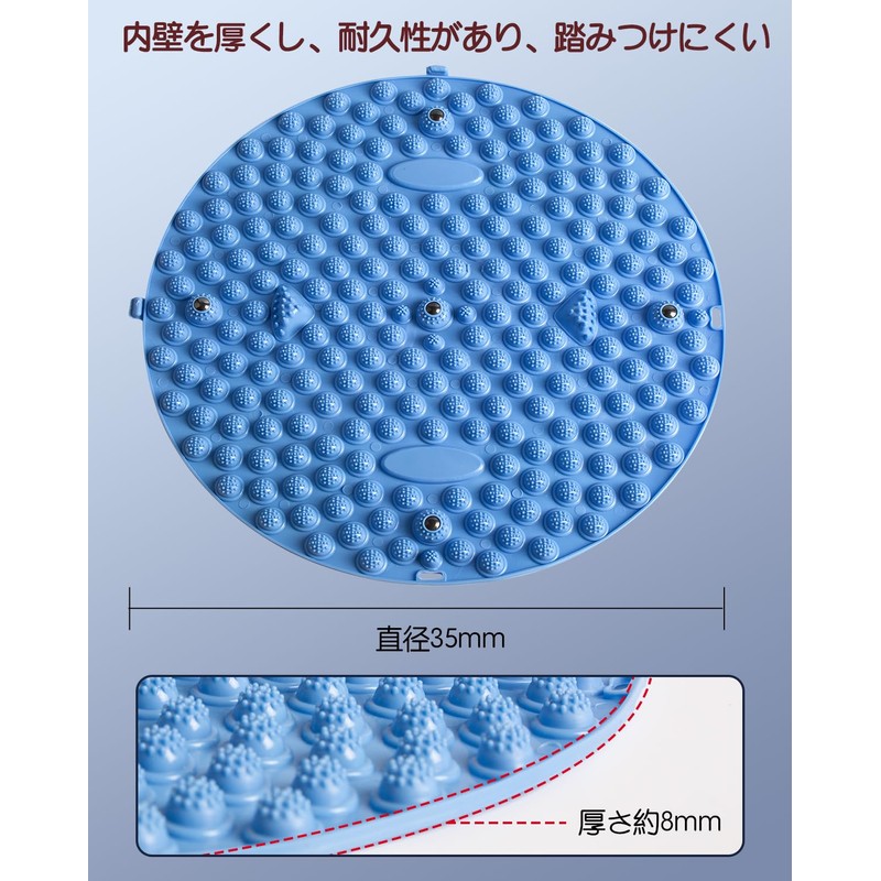 足ツボマット JGIIPOY 指圧ボード 足裏マッサージ 足ツボ押し フットマッサージャーマット 指圧板 円形 35CM 家庭用 人間工学指圧パッド 足ツボ マット 疲労軽減 足つぼ 指圧マット 足踏みマット (ブルー)