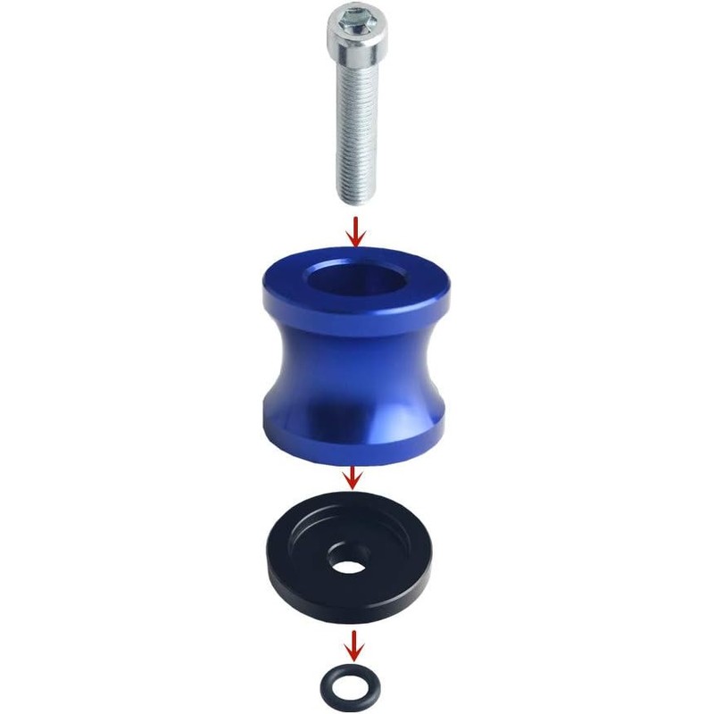 ❤Feature-Swing arm spool screw which is used with the swing arm can easily make the motorbike up and down, to avoid to damage the body of your motorbike while you stop it or repair it.JGR's swing arm spool has a spacer which is used For Increasing the Force area, thus to reduce the damage to the motorcycle body.
