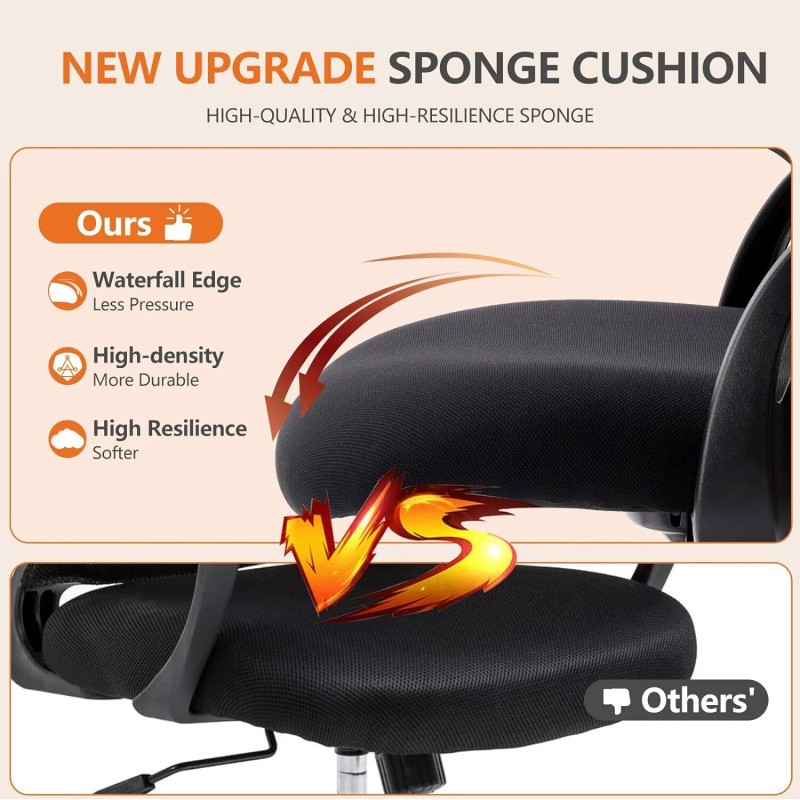 JHK Home Office Standing Desk Computer Chair with Flip-up Armrests Drafting Chair - Black