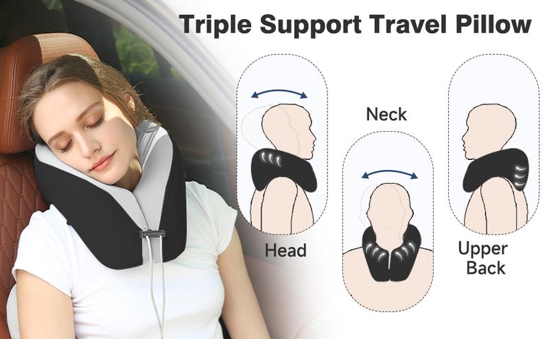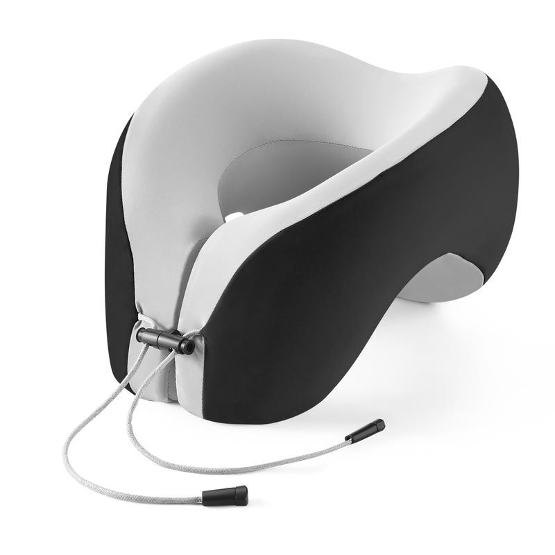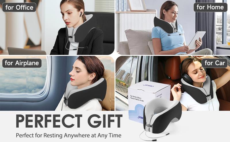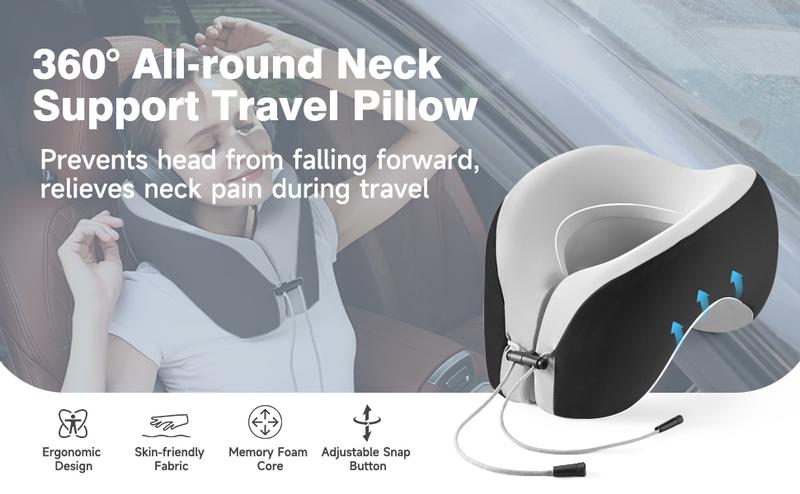 JIAAO Travel Pillow Memory Foam for Airplanes - Neck Pillow for Traveling, Car, Home, Flight Pillow for Sleeping with Attachable Snap Strap Soft Washable Cover, Provide Head Neck Support Rest, Dark Gray, Dark Gray infinity pillow - Colour: Grey