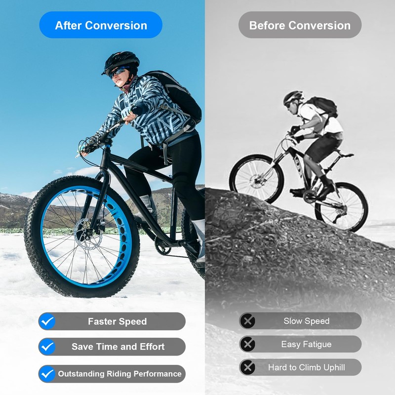 - 【ECONOMICAL AND PRACTICAL】: Transform your standard bike into a powerful e-bike with this ebike conversion kit. It enhances riding efficiency, reduces physical strain, and delivers a cooler, more effortless travel experience.