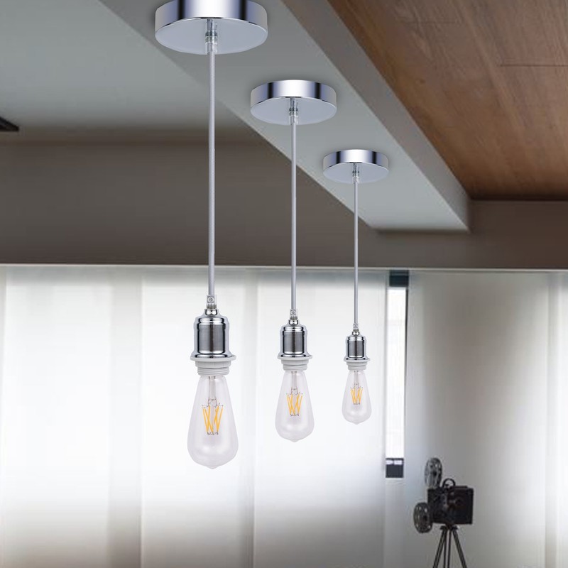 - Braided Flex Chrome Ceiling Rose, Suspended Pendant Light Fitting Kit, E27 Base Lamp Holder