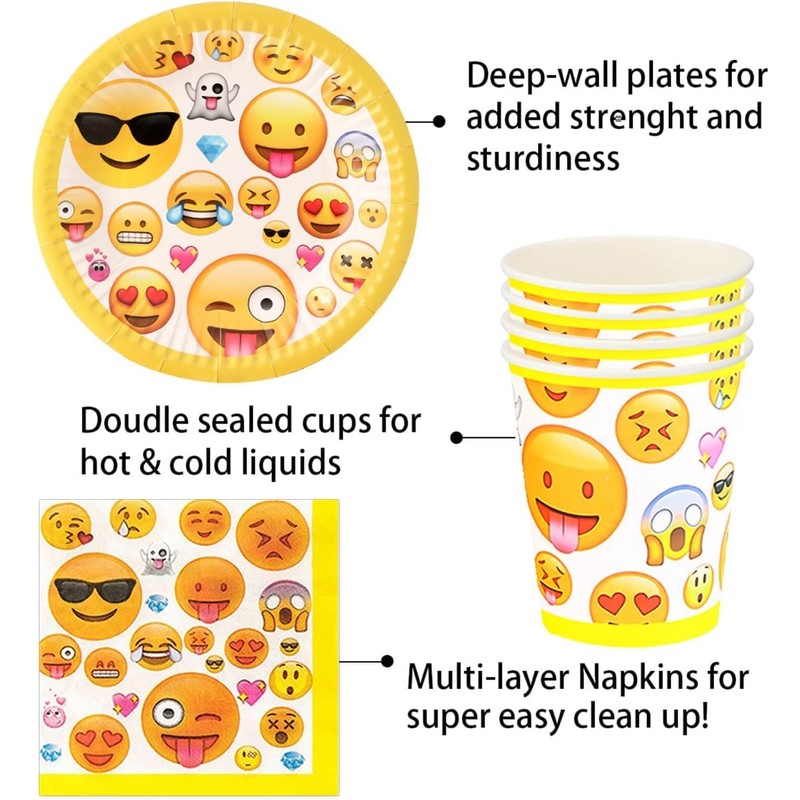• 【Wunderschön Gestaltet】Mit lebendigen Emojis auf jedem Stück fügt unser Geschirrset einen Hauch von Farbe und jede Menge Freude Ihrer Party-Atmosphäre hinzu. Bereiten Sie sich auf Lächeln rundherum vor!