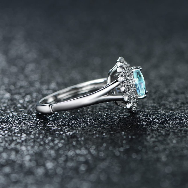JIANGXIN 925 Sterling Silver Anniversary Ring Princess Diana Royal Engagement Platinum Plated Fine Jewelry for Women Adjustable size 6 7 8 9 (Aquamarine)