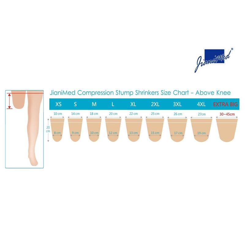 JianiMed Prosthetic Stump Shrinkers– Above Knee, 20cm, Compression, Amputee Socks, 20-30, Daily use, Taiwan Excellence XS