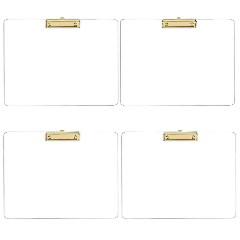 JIARI 4 Pack Clear Acrylic Office Clipboard A4 Letter Size 9.06" x 12.6" (Gold Horizontal 4 Pack)