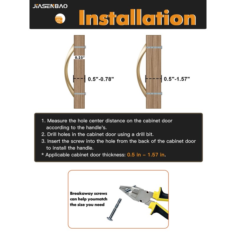 - WHAT'S IN THE BOX: You will get 1* cabinet pull, 2* normal screws and 2* long breakaway screws for each pack