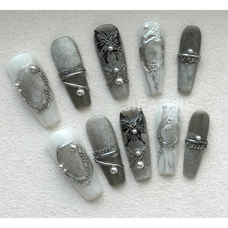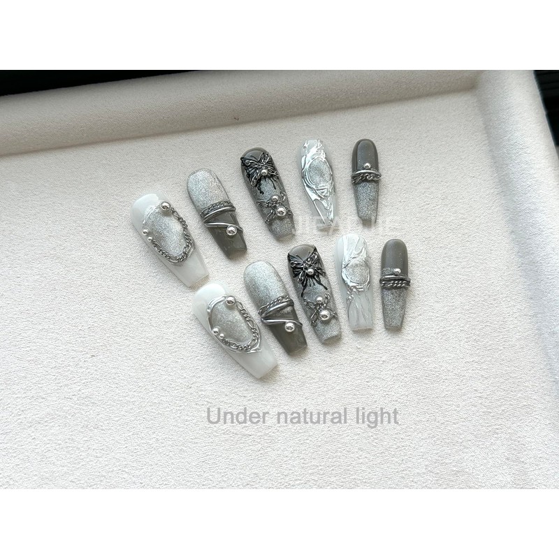 - 【100% Handmade】 Press-on manicure is 100% hand painted by our nail technicians! Our press-on manicure designs are unique. Press-on manicure has no dangerous chemical process to damage your nails and is strong enough to last after 8 handmade processes.