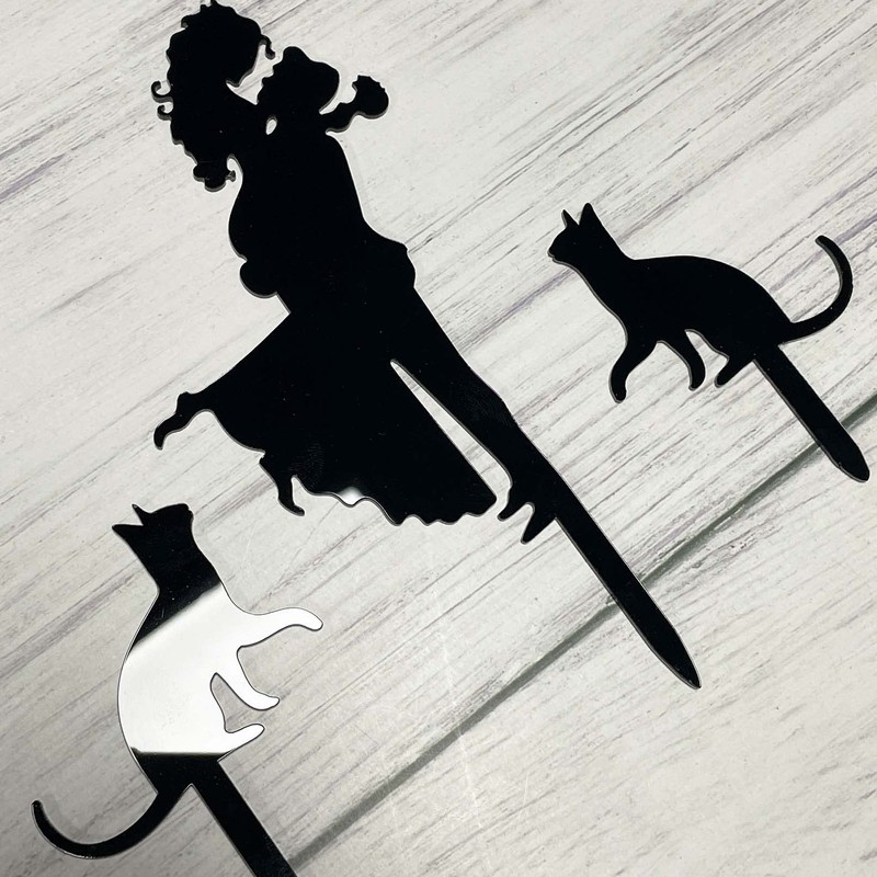 JIEEIN Decoración para tarta de boda, diseño de novia con flores, además de dos gatos, silueta para tartas