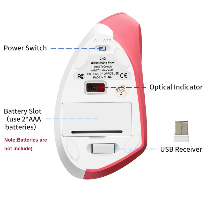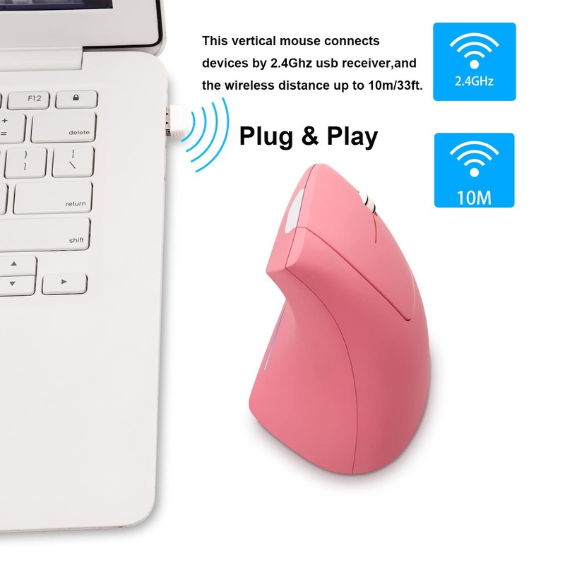 - 2.4G usb wireless mouse▸This vertical mouse connects devices by 2.4Ghz usb receiver,and the wireless distance up to 10m/33ft.Plug and play if there is an available USB port.Wide compatibility with Windows 8 / 7 / Vista / XP / 2000 Linux Mac OS