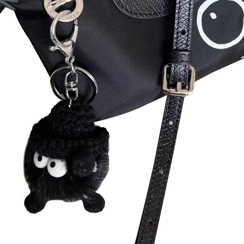 jiesinlov Kawaii Plush Small Briquettes Pendant Cute Car Keychain,Purse Backpack Charms Accessories Key Chain for Women or Girls Bags(Silver Buckle&Black)