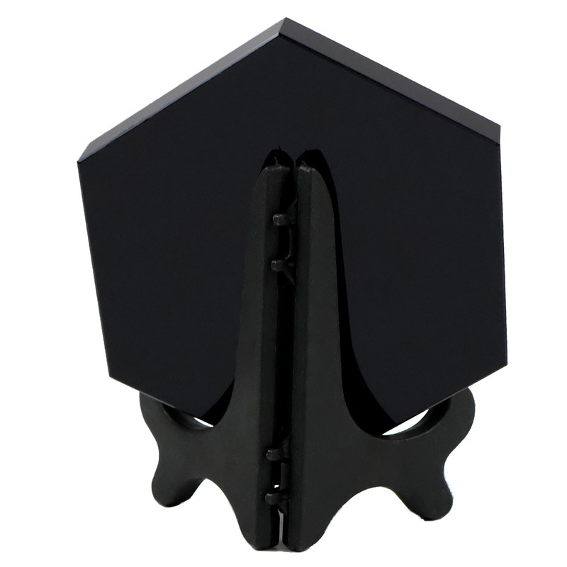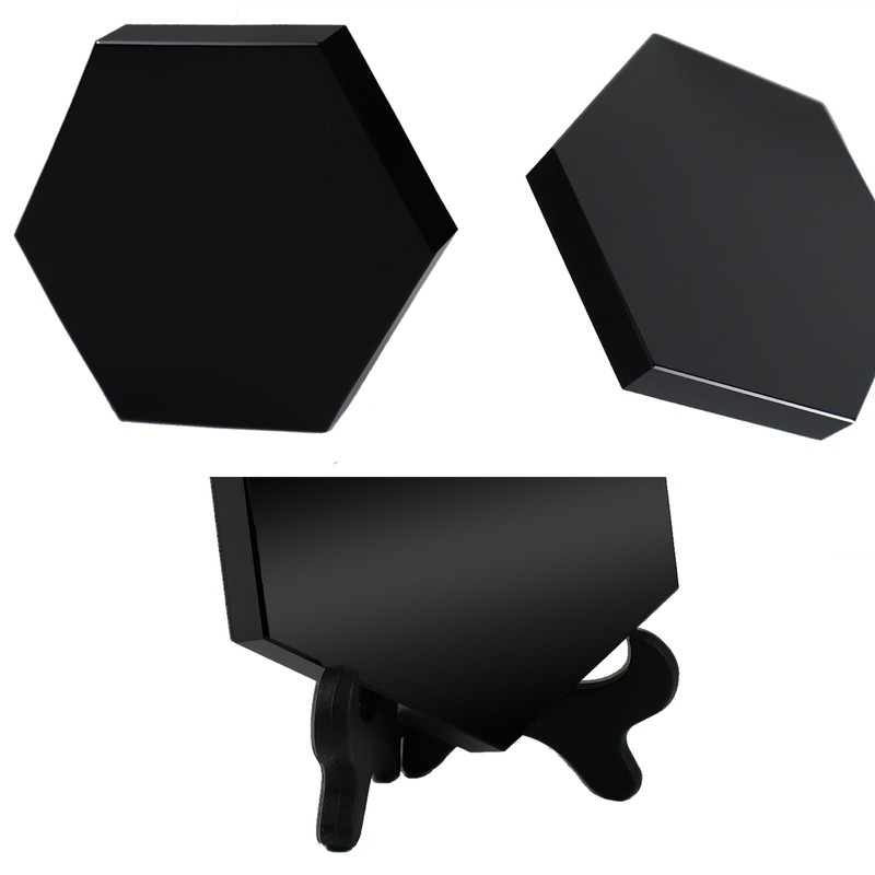 JIEXUAN Black Obsidian Scrying Mirror, Hexagonal Rhombus Obsidian Feng Shui Mirror with Stand, Home Decor Crafts (Black, 6cm)