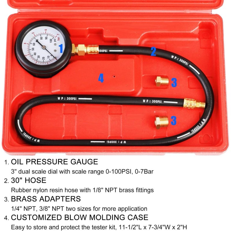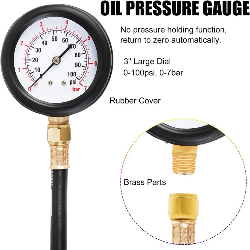 JIFETOR Oil Pressure Tester Kit, Professional Engine Diagnostic Red Case