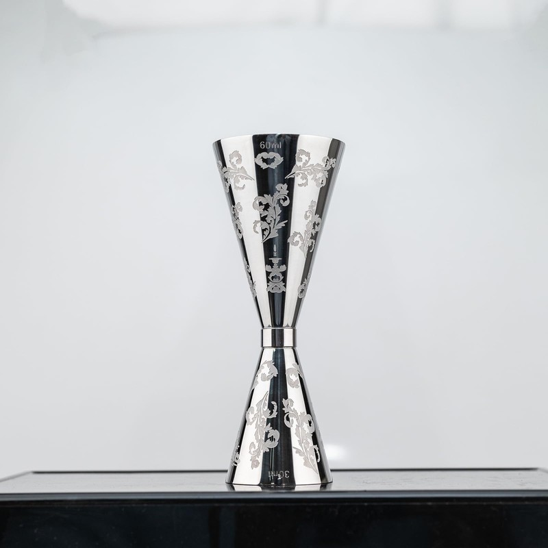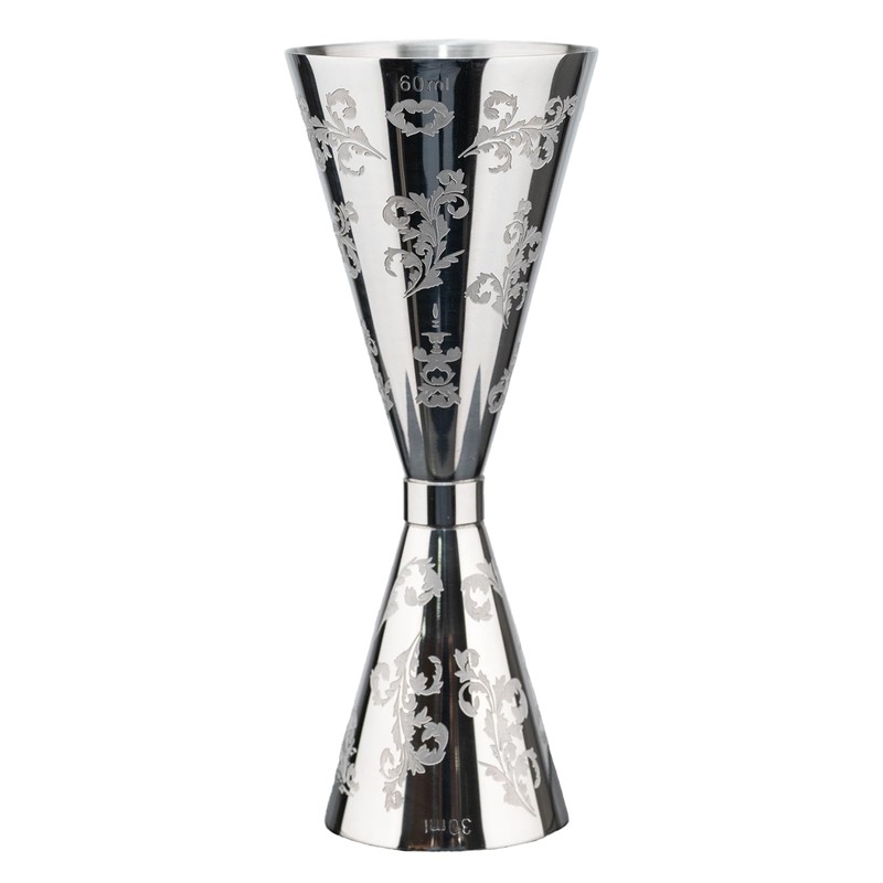 Jigger for Bartending, Cocktail Jigger 30ml 60ml with Measurements Inside, 304 Stainless Steel Jigger, bar Accessories, Cocktail Measuring Cup, Silver, Etched