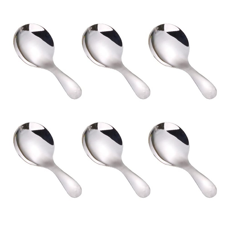 JIHUOO 6 Pieces Small Salt Spoons Stainless Steel Tea Spoons Sugar Spoon Spoon with Short Handle for Jam Jars Spices Coffee Silver