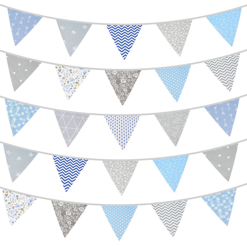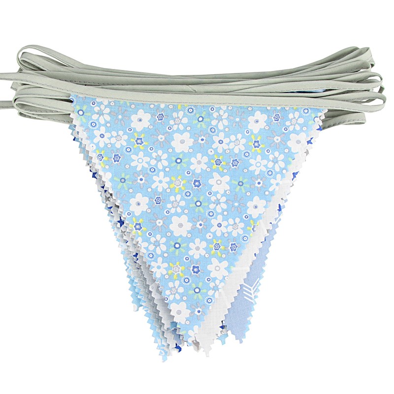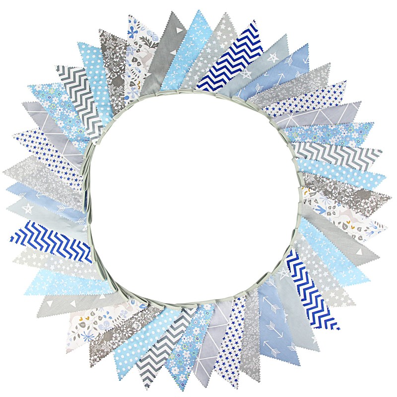 jijAcraft 39Ft Triangle Bunting Banner, 42Pcs Tea Floral Party Bunting Cotton Fabric Flags Pennant Garlands for Birthday Party, Wedding, Baby Shower, Outdoor and Home Decorations (Gray and Blue)